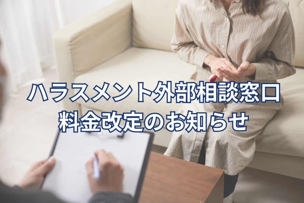 ハラスメント外部相談窓口 料金改定のお知らせ 公開日:2025年11月28日 平素より当事務所のハラスメント外部相談窓口サービスをご利用いただき、誠にありがとうございます。 このたび、昨今の物価上昇や通信環境・セキュリティ対策等に要するコストの増加を踏まえ、継続的に安心・安全な相談体制を維持してい […] 続きを読む
